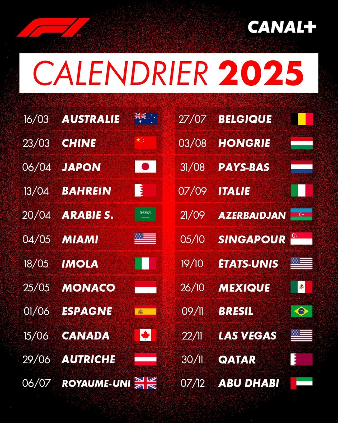 La saison s’élancera du 14 au 16 mars à Melbourne pour le Grand Prix d’Australie, tandis que la dernière course aura lieu du 5 au 7 décembre à Abu Dhabi. Ce calendrier complet promet une année riche en action et en surprises pour les fans de F1.